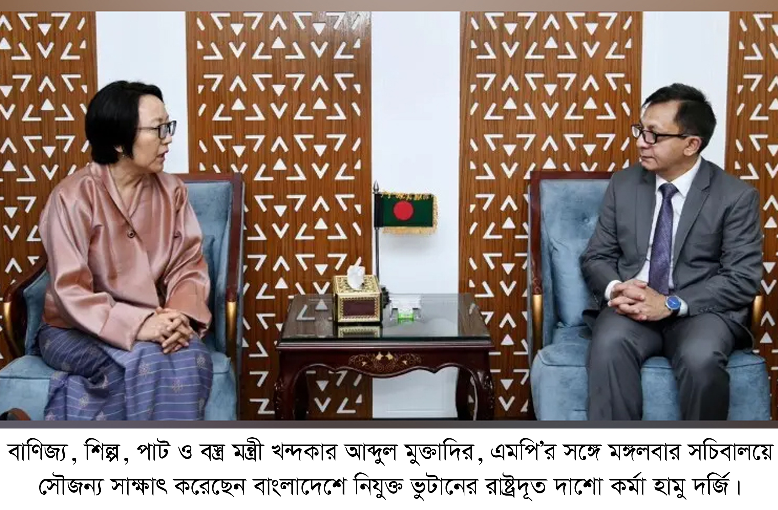 সাক্ষাৎকালে মন্ত্রী দ্বিপাক্ষিক স্বার্থসংশ্লিষ্ট বিভিন্ন বিষয়ে আলোচনা করেন। খন্দকার আব্দুল মুক্তাদির বলেন, “বাংলাদেশ এখন টেকসই উন্নয়নের দিকে এগোচ্ছে।