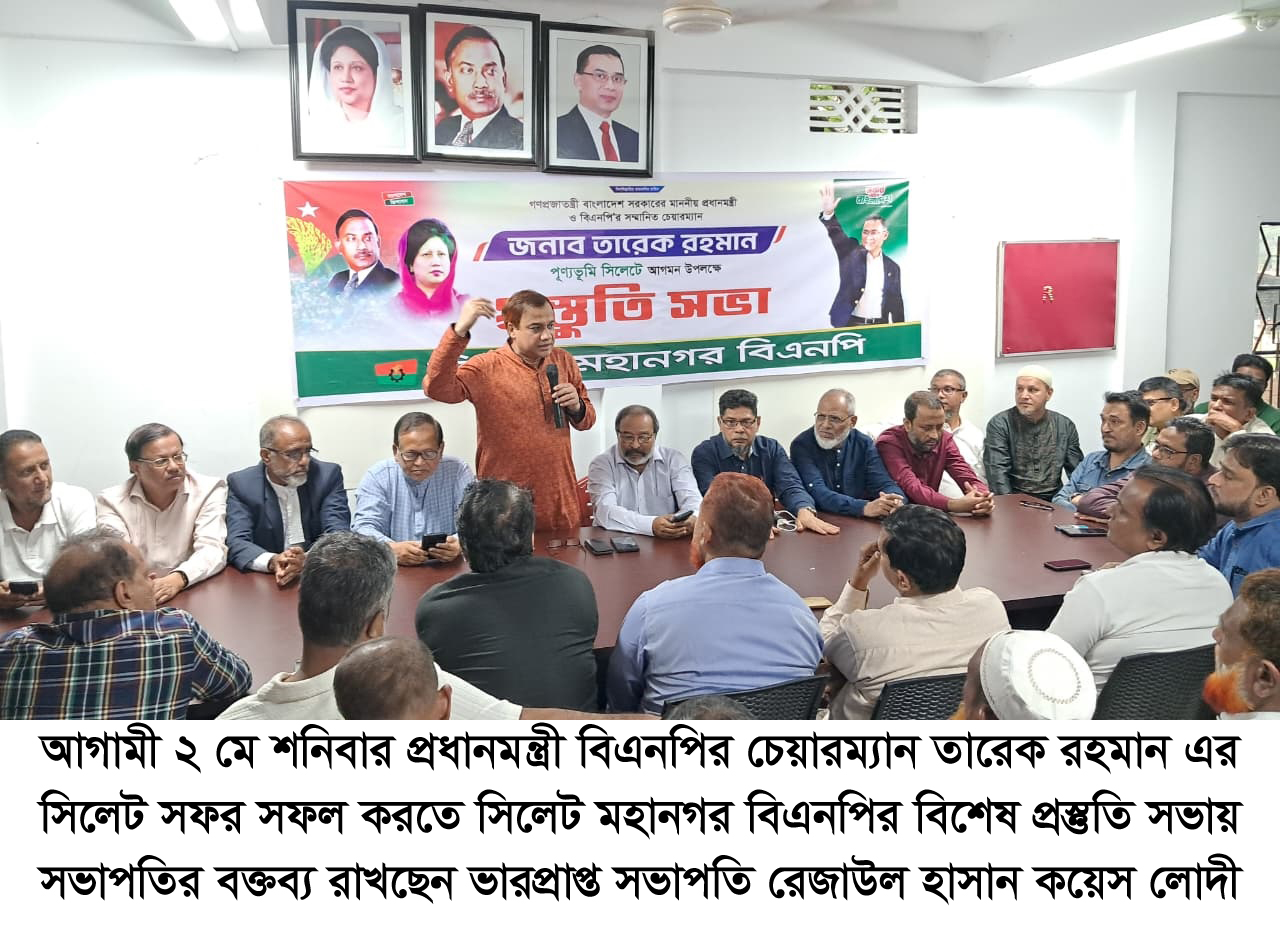 » আগামী ২ মে শনিবার প্রধানমন্ত্রী তারেক রহমানের সিলেট আগমন উপলক্ষে প্রস্তুতি সভা