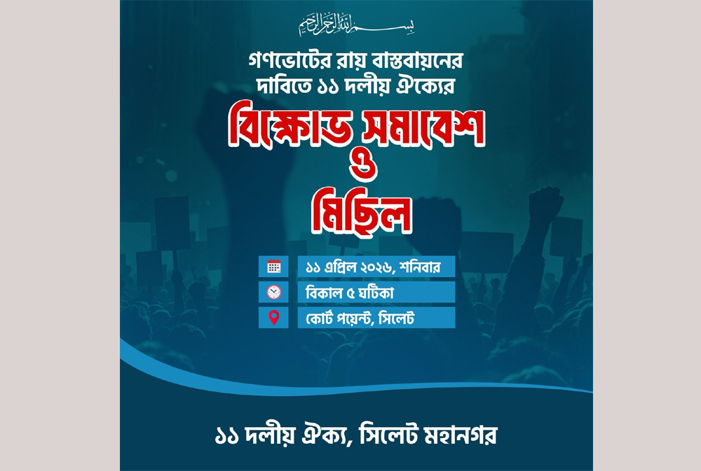 - সিলেট মহানগর ১১ দলীয় ঐক্যের গণমিছিল ও সমাবেশ
