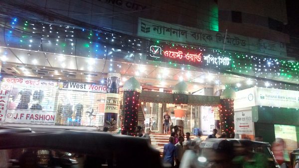 মহানগরীর ব্যস্ততম এলাকা পশ্চিম জিন্দাবাজারস্হ ওয়েস্ট ওয়ার্ল্ড শপিং সিটিতেও ঈদের কেনাকাটায় ব্যস্ত ক্রেতা সাধারণ। সাশ্রয়ী মূল্যে বৈচিত্র্যময় হরেক রকম পণ্যের সমাহার রয়েছে এ মার্কেটে।