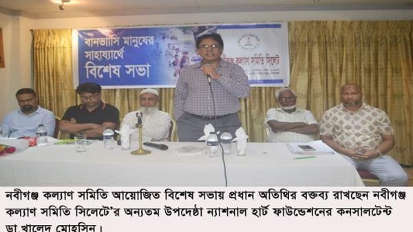 নবীগঞ্জ কল্যাণ সমিতি সিলেটে’র অন্যতম উপদেষ্ঠা ন্যাশনাল হার্ট ফাউন্ডেশনের কনসালটেন্ট ডা.খালেদ মোহসিন বলেছেন, জনকল্যাণমূলক কাজে সম্পৃক্ত থাকলে দারিদ্রতা দূর করা সম্ভব এবং বন্যার্তদের পাশে থাকা অন্যতম একটি মাধ্যম।