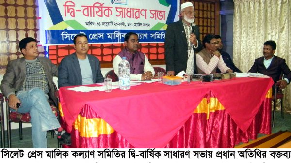 সিলেট প্রেস মালিক কল্যাণ সমিতির সভাপতি মেহেদী কাবুলের সভাপতিত্বে ও সাধারণ সম্পাদক আমিনুল হক বেলালের পরিচালনায় প্রধান অতিথির বক্তব্য রাখেন সমিতির প্রতিষ্ঠাতা সভাপতি বীর মুক্তিযোদ্ধা মনির উদ্দিন চৌধুরী।