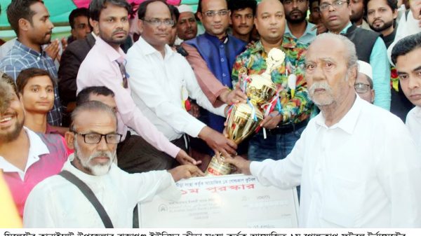 খেলা শেষে চ্যাম্পিয়ন ও রানার্স আপ দলকে সোনার ও রুপার ট্রপি বিতরণ করেন অতিথিরা।