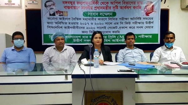 সংবাদ সম্মেলনে বলা হয়, ‘আমরা বাংলাদেশ বার কাউন্সিলের আইনজীবী তালিকাভুক্তকরণ এনরোলমেন্ট প্রক্রিয়ার প্রিলিমিনারি পরীক্ষায় ২০১৭ সালের ২১ জুলাই এবং চলতি বছরের ২৮ ফেব্রুয়ারি উত্তীর্ণ শিক্ষানবিশ আইনজীবী। দীর্ঘদিন ধরে বাংলাদেশ বার কাউন্সিল কর্তৃক এনরোলমেন্ট পরীক্ষা সম্পন্ন না হওয়ায় আমরা মানবেতর জীবনযাপন করছি।
