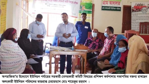 ৩নং অলংকারী ইউনিয়ন পরিষদের ভারপ্রাপ্ত চেয়ারম্যান মোঃ শায়েকুর রহমান এর সভাপতিত্বে ও অপরাজিতা’র বিশ্বনাথ উপজেলা সমন্বয়কারী বেলাল আহমদ এর সঞ্চালনায় কর্মশালায় প্রশিক্ষণ প্রদান করেন অপরাজিতা’র বিভাগীয় কেপাসিটি বিল্ডিং অফিসার কামরুল ইসলাম।