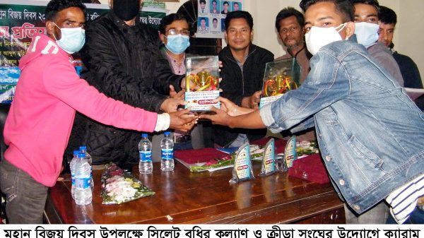 মহান বিজয় দিবস উপলক্ষে সিলেট বধির কল্যাণ ও ক্রীড়া সংঘের উদ্যোগে ক্যারাম প্রতিযোগিতার পুরস্কার বিতরণ ও আলোচনা সভা অনুষ্ঠিত হয়েছে।