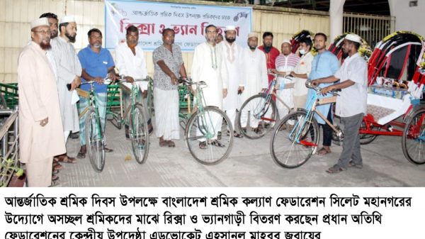 অস্বচ্ছল শ্রমিকদের মাঝে শ্রমিক কল্যাণ ফেডারেশনের রিক্সা ও ভ্যানগাড়ী বিতরণ একটি মহৎ উদ্যোগ। এসব উদ্যোগে বিত্তবানদের সহযোগিতা প্রয়োজন।