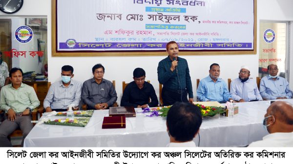 সমিতির সাধারণ সম্পাদক অ্যাডভোকেট মো. এমদাদুল হকের স্বাগত বক্তব্যের মাধ্যমে সূচিত সংবর্ধনা অনুষ্ঠানে বিশেষ অতিথির বক্তব্য রাখেন, কর অঞ্চল সিলেটের যুগ্ম কর কমিশনার সাহেদ আহমদ চৌধুরী, পঙ্কজ লাল রায়, উপ কর কমিশনার মো. আবু সাঈদ, মো. হামিদুল হক, আওরঙ্গজেব খান, আক্কাস আলী, মো. সেলিম রেজা, সহকারি কর কমিশনার মোহাম্মদ হোসাইন।