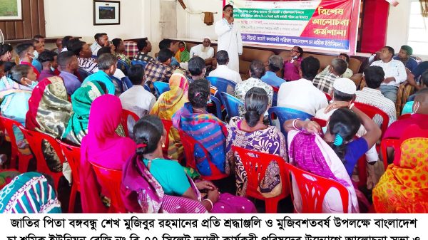 জাতির পিতা বঙ্গবন্ধু শেখ মুজিবুর রহমানের প্রতি শ্রদ্ধাঞ্জলি ও মুজিবশতবর্ষ উপলক্ষে বাংলাদেশ চা শ্রমিক ইউনিয়ন রেজি নং বি-৭৭ সিলেট ভ্যালী কার্যকরী পরিষদের উদ্যোগে বিশেষ আলোচনা কর্মশালা অনুষ্ঠিত হয়েছে।