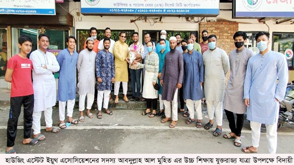 হাউজিং এস্টেট ইয়ুথ এসোসিয়েশনের সদস্য আবদুল্লাহ আল মুহিত’র উচ্চ শিক্ষার জন্য যুক্তরাজ্য যাত্রা উপলক্ষে বিদায়ী সংবর্ধনা প্রদান করা হয়েছে।