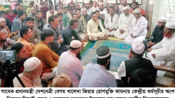 সাবেক প্রধানমন্ত্রী দেশনেত্রী বেগম খালেদা জিয়ার রোগমুক্তি কামনায় কেন্দ্রীয় কর্মসূচীর অংশ হিসেবে সিলেট জেলা ও মহানগর যুবদলের উদ্যোগে শুক্রবার (১৯ নভেম্বর) বাদ আছর সিলেট নগরীর জিন্দাবাজারস্থ বাইতুল আমান জামে মসজিদে দোয়া মাহফিলের আয়োজন করা হয়।
