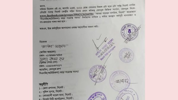 - সিলেটে ভূমিহীন অসহায় মানুষের বাসস্থানের দাবিতে জেলা প্রশাসক বরাবর স্মারকলিপি প্রদান
