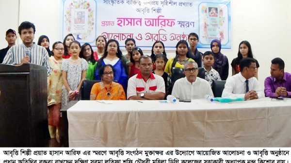 “তোমার স্বরের কাছি ছুটে আসি বারবার, তেমনি থাক যেন অনন্ত হৃদয়ে সবার” বাংলাদেশের আবৃত্তি জগতের বলিষ্ট কণ্ঠের দিকপাল অনবদ্ধ আবৃত্তি শিল্পী প্রয়াত হাসান আরিফ এর স্মরণে আলোচনা ও আবৃত্তি অনুষ্ঠান অনুষ্ঠিত হয়েছে।