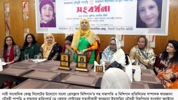 তিনি সোমবার (৩ অক্টোবর) সন্ধ্যায় সিলেটের জিন্দাবাজারের গ্রান্ড বাফেট হোটেলের হলরুমে নারী সাংবাদিক কেন্দ্র সিলেট বিভাগীয় কমিটি আয়োজিত সংবর্ধনা অনুষ্টানে প্রধান অতিথির বক্তব্যে এ কথা বলেন। প্রবাসে সফল দুই নারী, বাংলা প্রেসক্লাব মিশিগানের সহ সভাপতি ও মিশিগান প্রতিদিন এর সম্পাদক ফারজানা চৌধুরী পাপড়ি ও যুক্তরাজ্য প্রবাসী নারী উদ্যোক্তা হামিংবার্ড চিলড্রেন কেয়ার সেন্টারের মালিক ফাহানা চৌধুরী নিমপিয়ার সম্মানে সংবর্ধনা অনুষ্টানের আয়োজন করা হয়।