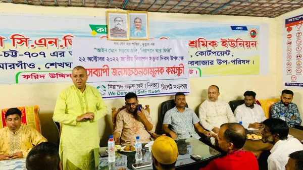 সিএনজি অটোরিকশা শ্রমিক ইউনিয়ন ৭০৭ এর কেন্দ্রীয় সভাপতি মোহাম্মদ জাকারিয়া আহমদ এর সভাপতিত্বে অনুষ্ঠানে প্রধান অতিথি হিসেবে বক্তব্য রাখেন, নিরাপদ সড়ক চাই (নিসচা) কেন্দ্রীয় কমিটির সহ-সাংগঠনিক সম্পাদক ও আজীবন সদস্য জহিরুল ইসলাম মিশু।