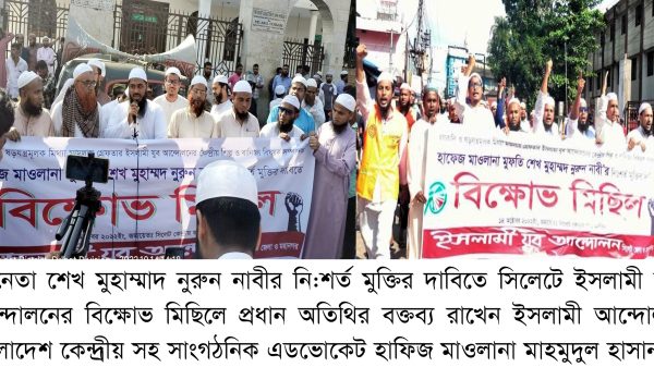 যুবনেতা শেখ মুহাম্মাদ নুরুন নাবীর নি:শর্ত মুক্তির দাবিতে সিলেটে ইসলামী যুব আন্দোলনের বিক্ষোভ মিছিল অনুষ্ঠিত হয়েছে।