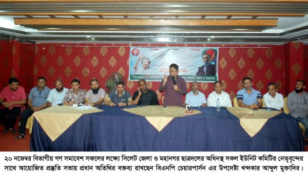 » ২০শে নভেম্বর গণসমাবেশ সফলের লক্ষ্যে সিলেটে ছাত্রদলের প্রস্তুতি সভা অনুষ্ঠিত
