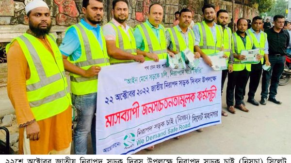 এসময় নিসচা সিলেট শাখার সভাপতি এম ইকবাল হোসেন বলেন, ২২শে অক্টোবর জাতীয় নিরাপদ সড়ক দিবস উপলক্ষে নিসচা সারা দেশব্যাপী জনসচেতনামূলক কর্মসূচি গ্রহণ করেছে।