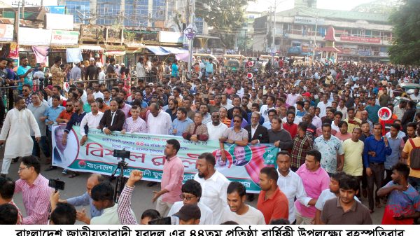 » ৪৪তম প্রতিষ্ঠাবার্ষিকীতে সিলেট জেলা ও মহানগর যুবদলের র্যালি