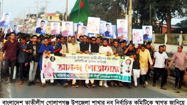 বাংলাদেশ তাতীলীগ গোলাপগঞ্জ উপজেলা শাখার নব নির্বাচিত কমিটিকে স্বাগত জানিয়ে উপজেলা তাঁতী লীগ সহ সর্বস্তরের নেতাকর্মীদের উদ্যোগে এক আনন্দ শোভাযাত্রা বের করা হয়েছে।