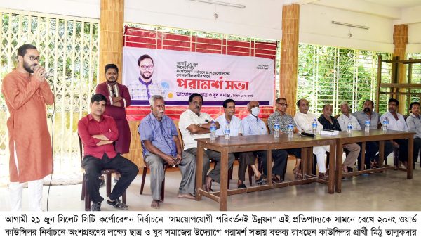 সভায় বক্তারা বলেন, উন্নয়ন শুধু দৃশ্যগত নয়, তাকে টেকসই করতে হলে তার মধ্যে স্বচ্ছতা, জবাবদিহি এবং সর্বজনের উপযোগী হওয়ার জন্য মালমসলা থাকতে হয়। আমরা দেখেছি বিগত দিনে যারা কাউন্সিলর ছিলেন তারা উন্নয়নের প্রতি কতোটা কেমন ছিলেন তাই এখন সময়ের দাবি উন্নয়নের জন্য আমাদের ২০নং ওয়ার্ডে পরিবর্তন আনা, নতুন কেউ কাউন্সিলর হোক এটাই আমাদের প্রত্যাশা। দলমত নির্বিশেষে সবাই মিঠু তালুকদারকে ভালোবাসে। বিশেষ করে আমরা সবাই তাকে ছোট থেকে চিনি তার মনমানসিকতা সম্পর্কে জানি। তরুণ প্রজন্মের কাছে সে একজন উদ্দোক্তা হিসেবে পরিচিত। মিঠু একজন পরিশ্রমী সে সমাজের কাছে নতুন কিছু দিতে পারবে। তাই আমাদের সবার সমর্থন ও আর্শীবাদ আছে তার প্রতি। আগামী ২১ জুন আমাদের এলাকার ভোটাররা বিপুল ভোটে মিঠুকে বিজয়ী করবে এ বিশ্বাস ও ভরসা আছে আমাদের।