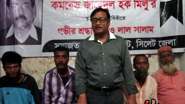 শুক্রবার (১৬ জুন) বিকাল সাড়ে ৫টায় আম্ভরখানাস্হ দলীয় কার্যালয়ে সমাজতান্ত্রিক শ্রমিক ফ্রন্ট সিলেট জেলা আহ্বায়ক আবু জাফর এর সভাপতিত্বে স্মরণসভায় অন্যান্যের মধ্যে বক্তব্য রাখেন, সমাজতান্ত্রিক নির্মাণ ফ্রন্ট জেলা সাধারণ সম্পাদক মামুন বেপারি, শফিকুল ইসলাম কাজল, চালক সংগ্রাম পরিষদের শহিদ মিয়া, আনোয়ার হোসেন, কুটি মিয়া, চা শ্রমিক ফেডারেশনের দীলিপ হাওলাদার, প্রমূখ।