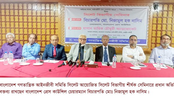 বাংলাদেশ গণতান্ত্রিক আইনজীবী সমিতি সিলেট বিভাগ আয়োজিত ‘আইনের শাসন,আইনজীবী এবং পেশাগত শিষ্টাচার ও বিধিমালা’-বিষয়ে সিলেট বিভাগীয় শীর্ষক সেমিনারে শনিবার দুপুরে নগরীর জেল হোটেলস্থ একটি অভিজাত হোটেল এর সম্মেলন কক্ষে প্রধান অতিথির বক্তব্যে তিনি এসব কথা বলেন।