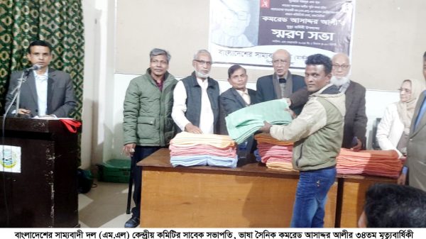 বাংলাদেশের সাম্যবাদী দল (এম.এল) কেন্দ্রীয় কমিটির সাবেক সভাপতি, ভাষা সৈনিক কমরেড আসাদ্দর আলীর ৩৪তম মৃত্যুবার্ষিকী উপলক্ষে এক স্মরণ সভা অনুষ্ঠিত হয়েছে।