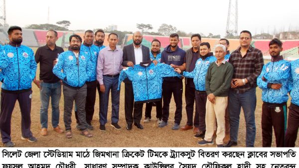 সোমবার (১২ ফেব্রুয়ারি) বিকাল ৫টায় সিলেট জেলা স্টেডিয়াম মাঠে এই ট্র্যাকসুট বিতরণ করা হয়।