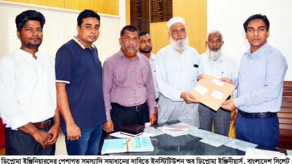 স্মারকলিপি প্রদান শেষে আইডিইবি কার্যালয়ে ইনস্টিটিউশন অব ডিপ্লোমা ইঞ্জিনীয়ার্স, বাংলাদেশ (আইডিইবি) সিলেট জেলা শাখার সভাপতি প্রকৌশলী মাহমুদুর রশীদ মসরুরের সভাপতিত্বে ও যুগ্ম সাধারণ সম্পাদক প্রকৌশলী মোহাম্মদ খালেদুর রহমানের পরিচালনায় অনুষ্ঠিত সভায় স্বাগত বক্তব্য রাখেন, আইডিইবি সিলেট জেলা শাখার সাধারণ সম্পাদক প্রকৌশলী রফিক উদ্দিন আহমেদ।