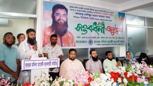 » ভারপ্রাপ্ত-মেয়র মখলিছুর রহমান কামরানকে বৃহত্তর মদিনা মার্কেট ব্যবসায়ী সমিতির সংবর্ধনা