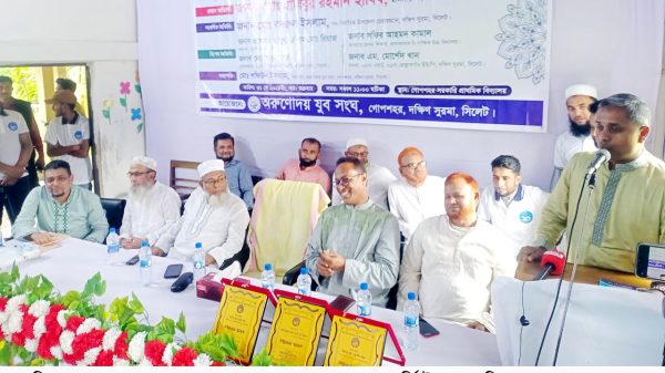 অরুণোদয় যুব সংঘের সভাপতি মো. শফিউল ইসলামের সভাপতিত্বে পারভেজ আহমেদ ও মোকাদ্দাছ খানের উপস্থাপনায় অনুষ্ঠানে সংবর্ধিত অতিথির বক্তব্য রাখেন, দক্ষিণ সুরমা উপজেলা পরিষদের চেয়ারম্যান মো. বদরুল ইসলাম।