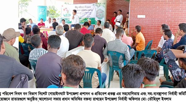 প্রধান অতিথির বক্তব্যে উপজেলা নির্বাহী অফিসার মো: তৌহিদুল ইসলাম বলেন-বিশ্ব পরিবেশ দিবসকে শুধু একটি দিনের মধ্যে সীমাবদ্ধ না রেখে এটিকে দৈনন্দিন রুটিন ওয়ার্ক হিসেবে দেখা উচিত। আমাদের প্রতিটি দিনের অভ্যাস ও দৈনন্দিন জীবনাচার পরিবেশ সংরক্ষণে সহায়ক। প্রাকৃতিক সম্পদ-পাহাড়, নদী, ছড়া, বনাঞ্চল ক্ষতিগ্রস্থ হচ্ছে। আমাদের সবাইকে ভবিষ্যত প্রজন্মের স্বার্থে পরিবেশ ও প্রকৃতির ক্ষতি সাধন থেকে বিরত থাকার প্রতিজ্ঞা নিতে হবে। দেশের গুরুত্বপূর্ণ জলজ বন রাতারগুলে পরিবেশ বান্ধব পর্যটন নিশ্চিত করতে এবং প্লাস্টিক দুষণ বন্ধ করতে পর্যটন সংশ্লিষ্ট নৌকার মাঝিসহ সকলকে সক্রিয় থাকার আহবান জানান।