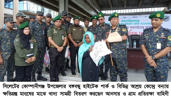 এমন দুর্যোগময় পরিস্থিতিতে মানবিক সহায়তা হিসেবে খাদ্য সামগ্রী নিয়ে কোম্পানিগঞ্জ উপজেলার ক্ষতিগ্রস্ত এসব বন্যার্তদের পাশে দাঁড়িয়েছেন আনসার ও ভিডিপি উপমহাপরিচালক (অপারেশনস্) মোঃ ফখরুল আলম, বিভিএম, পিএএমএস ।