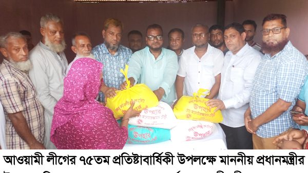 সিলেট নগরীর ২৭নং ওযার্ড আওয়ামী লীগের উদ্যোগে ৭৫তম প্রতিষ্টাবার্ষিকী উপলক্ষে মাননীয় প্রধানমন্ত্রী শেখ হাসিনার উপহার ২৭নং ওয়ার্ডের পানিবন্দী মানুষের মাঝে বিতরণ করা হয়েছে।
