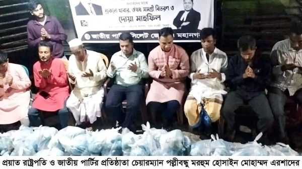 প্রয়াত রাষ্ট্রপতি ও জাতীয় পার্টির প্রতিষ্ঠাতা চেয়ারম্যান পল্লীবন্ধু মরহুম হোসাইন মোহাম্মদ এরশাদের ৫ম মৃত্যু বার্ষিকী উপলক্ষে ত্রাণ বিতরণ করেছে জাতীয় পার্টি সিলেট জেলা ও মহানগর শাখা।