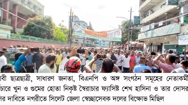 » শেখ হাসিনার ফাঁসির দাবিতে সিলেট জেলা স্বেচ্ছাসেবক দলের বিক্ষোভ
