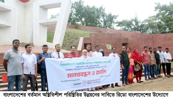 » বর্তমান অস্থিতিশীল পরিস্থিতির উন্নয়নের দাবিতে রিডো বাংলাদেশের মানববন্ধন ও র্যালি
