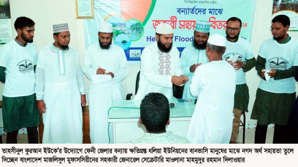 » ফেনীতে বন্যার্তদের তাহসীনুল কুরআন ইউকে’র নগদ অর্থ সহায়তা