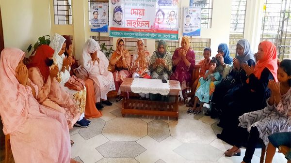 দোয়া মাহফিলে জাতীয়তাবাদী মহিলা দলের প্রতিষ্ঠা শহীদ রাষ্ট্রপতি জিয়াউর রহমান ও বিশিষ্ট ক্রীড়া সংগঠক আরাফাত রহমান কোকোর আত্মার মাগফেরাত কামনা, চেয়ারপার্সন দেশনেত্রী বেগম খালেদা জিয়া ও ভারপ্রাপ্ত চেয়ারম্যান দেশনায়ক তারেক রহমানের সুস্থতা কমনা এবং নিখোঁজ বিএনপির কেন্দ্রীয় সাংগঠনিক সম্পাদক এম. ইলিয়াস আলী, ছাত্রদল নেতা ইফতেখার আহমদ দিনার, জুনেদ আহমদ ও আনসার আলী সহ গুম হওয়া সকল নেতাকর্মীদের ফিরে পেতে মোনাজাত করা হয়।
