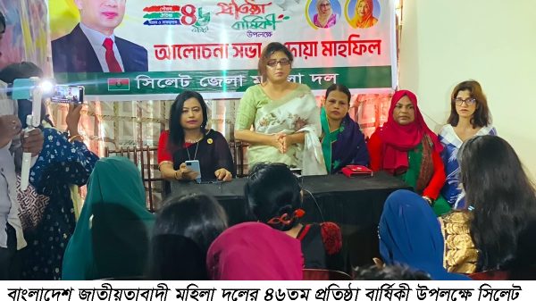সোমবার (৯ সেপ্টেম্বর) মহিলা দলের ৪৬তম প্রতিষ্ঠা বার্ষিকীতে সিলেট নগরীর উপশহরে আয়োজিত দোয়া মাহফিল ও খাবার বিতরণ পূর্ব আলোচনা সভায় জেলা মহিলা দলের সহ সভাপতি ফারজানা বক্স রায়নার সভাপতিত্বে ও সাধারণ সম্পাদক ফাহিমা আহমেদ কুমকুমের সঞ্চালনায় বক্তব্য রাখেন সহ সভাপতি আম্বিয়া বেগম, যুগ্ন সাধারণ সম্পাদক নাজমা বেগম, সহ সাংগঠনিক সম্পাদক সালমা আক্তার, সহ দপ্তর সম্পাদক জাহারা রুবিন, সদস্য নাসিমা বেগম, সদস্য রিনা সুলতানা, সদস্য জলি পুরকায়স্থ, সদস্য তুলি বেগম, চাদনি বেগম। আরো উপস্থিত ছিলেন শ্রমিক দলের সহ সভাপতি পারবিন বেগম, দক্ষিন সুরমা মহিলা দলের ও কোম্পানিগঞ্জ উপজেলা মহিলাদলের বিবি জান বেগম প্রমুখ।