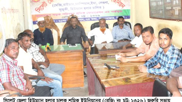 সিলেট জেলা হিউম্যান হলার চালক শ্রমিক ইউনিয়নের (রেজি: নং চট্র: ১৩২৬) জরুরি সভা অনুষ্ঠিত হয়েছে।