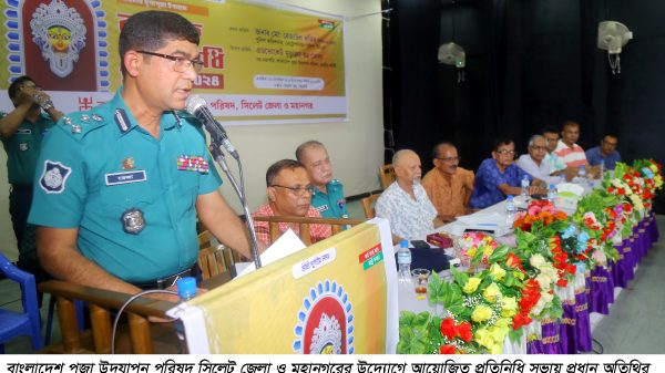 তিনি আরো বলেন, এদেশ আমাদের এদেশ সকলের এবং সকল মানুষ মিলেই একটি পরিবার। দীর্ঘ ঐতিহ্য হিসেবে এদেশে সবাই মিলেমিশে ধর্মীয় অনুষ্ঠান পালন করে আসছে এবং আগামীতেও ধর্ম পলনের এই ঐতিহ্য এবং চলমান সংস্কৃতি অব্যহত থাকবে। এটি কেউ বিনষ্ট করতে পারবেনা এবং করতেও দেয়া হবেনা। আমরা প্রত্যেকে যার যার অবস্থান থেকে নিজনিজ দায়িত্ব সঠিক ভাবে পালন করার ম্যধ্যদিয়ে ধর্মীয় সম্প্রীতি বজায় রাখব। বিশেষ করে সিলেট হচ্ছে পূণভূমির একটি সম্প্রীতির নগরী। এই নগরীতে সকল প্রকার শান্তি শৃংঙ্খলা এবং সম্পীতি বজায় রাখার দায়িত্ব আমাদের সবার। তাই যাতে কোনো ধরনের বিভেদ সৃষ্টি না হয়। সেদিকে আপনার আমার সবাইকেই খেয়াল রাখতে হবে। পূজা চলাকালীন সময়ে মন্দিরের স্বেচ্ছাসেবীদের আইডি কার্ড সাথে রাখা সহ সিসি ক্যামেরা এবং নিরবিচ্ছন্ন বিদ্যুৎ সঞ্চালনরা জন্য জেনারেটরের ব্যবস্থা রাখার পরামর্শ দেন পুলিশ কমিশনার মো. রেজাউল করিম পিপিএম (সেবা)।