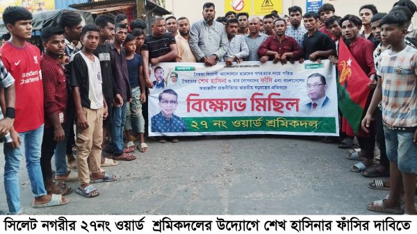 » শেখ হাসিনার ফাঁসির দাবিতে ২৭নং ওয়ার্ড শ্রমিকদলের বিক্ষোভ মিছিল