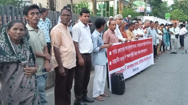 সোমবার (২৩ সেপ্টেম্বর) বিকাল ৫টায় চৌহাট্টাস্হ শহীদ মিনারের সামনে সিপিবি জেলা সভাপতি সৈয়দ ফরহাদ হোসেন এর সভাপতিত্বে ও সাম্যবাদী আন্দোলন সিলেট জেলা নেতা এডভোকেট রণেন সরকার রনির সঞ্চালনায় মানববন্ধনে বক্তব্য বাংলাদেশ জাসদ কেন্দ্রীয় কমিটির যুগ্ম সাধারণ সম্পাদক ও মহানগর শাখার সভাপতি এডভোকেট জাকির আহমদ,বাসদ জেলা আহ্বায়ক আবু জাফর, সিপিবি সাবেক সাধারণ সম্পাদক এডভোকেট আনোয়ার হোসেন সুমন, বিপ্লবী কমিউনিস্ট লীগের সম্পাদক সিরাজ আহমদ, সাম্যবাদী আন্দোলনের সমন্বয়ক সুশান্ত সিনহা সুমন,বাসদ (মার্কসবাদী) জেলা সদস্য সঞ্জয় কান্ত দাশ প্রমূখ।