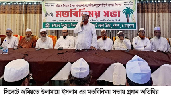 আজ শুক্রবার (২৭ সেপ্টেম্বর) বিকেলে সিলেট শহরস্থ অভিজাত হলে এ মতবিনিময়ে তিন পর্বে সভাপতিত্ব করেন, সিলেট মহানগর জমিয়তের সভাপতি মাওলানা খলিলুর রহমান, সিলেট জেলা দক্ষিণের সভাপতি মুফতি মুজিবুর রহমান, উত্তর জেলা জমিয়তের সভাপতি মাওলানা আতাউর রহমান কোম্পানীগঞ্জী।