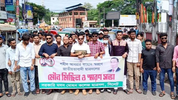 সোমবার (৭ অক্টোবর) দুপুর ১২টায় মৌন মিছিলটি মদন মোহন কলেজ ক্যাম্পাসের সামন থেকে শুরু হয়ে রিকাবীবাজার হয়ে নগরীর বিভিন্ন সড়ক প্রদক্ষিণ করে কলেজে ক্যাম্পাসে গিয়ে শেষ হয়।