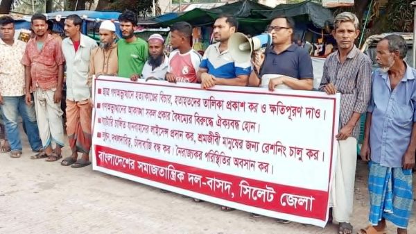 নিত্যপণ্যের দাম কমানো, জনজীবনে স্বাভাবিক পরিস্থিতি ফিরিয়ে আনার দাবিতে বাংলাদেশের সমাজতান্ত্রিক দল-বাসদ সিলেট জেলা শাখার উদ্যোগে টুকেরবাজারে মানববন্ধন ও বিক্ষোভ সমাবেশ অনুষ্ঠিত হয়।