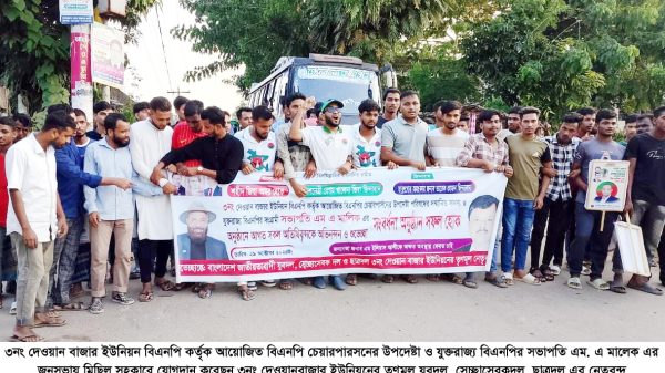 ৩নং দেওয়ান বাজার ইউনিয়ন বিএনপি কর্তৃক আয়োজিত বিএনপি চেয়ারপারসনের উপদেষ্টা ও যুক্তরাজ্য বিএনপির সভাপতি এম. এ মালেক এর জনসভায় মিছিল সহকারে যোগদান করেছে ৩নং দেওয়ানবাজার ইউনিয়নের তৃণমূল যুবদল, সেচ্ছাসেবকদল, ছাত্রদল।
