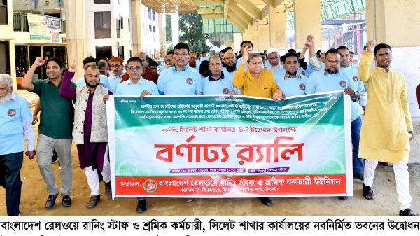 » বাংলাদেশ রেলওয়ে রানিং স্টাফ ও শ্রমিক কর্মচারী, সিলেট শাখার কার্যালয়ের নবনির্মিত ভবনের উদ্বোধন উপলক্ষে র্যালি ও সভা